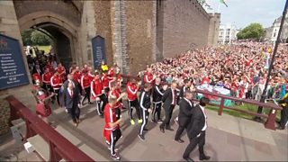 Ramsey a Gunter ar waliau'r castell