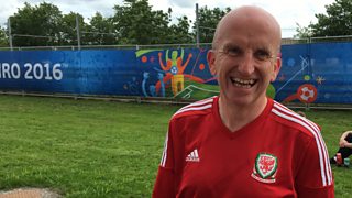 Rhys Iorwerth yn darllen ei gerdd am brofiad y cefnogwyr yn Lyon.