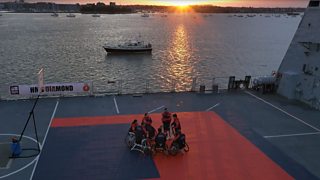 Team UK prepare to take on arch rivals USA - on board HMS Diamond.