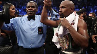 Hear the closing moments of Floyd Mayweather's victory over Conor McGregor