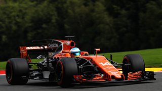 Alonso shows his annoyance towards his team radio.