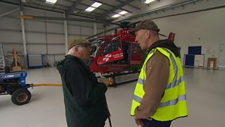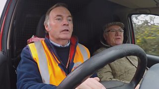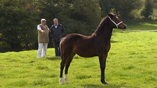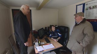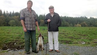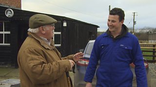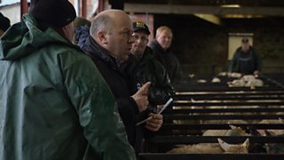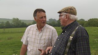 Dai Jones sy'n ymweld a Dei Everiss yn ardal Llangernyw, ger Abergele, graddiwr wyn mew...