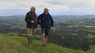 Dai Jones, Llanilar sy'n ymweld a Guto Lewis, yn ardal y Trallwng, Powys. Dai Jones, Ll...