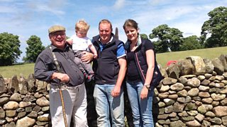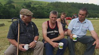 Dai Jones sy'n ymweld a Gwyn a Nicky Jones a'r meibion ar Fferm Frongoy, Pennant, Cered...