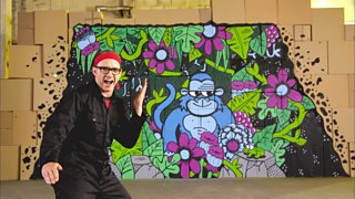 Ricky draws a scary character and makes a goblin puppet and a gassy balloon ghost.