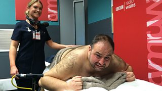 On day one of his Big Summer Tour, Wynne tries out a Zorbing wheel at Pontypridd Lido