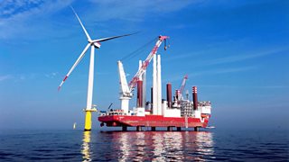 Mae Cai Erith Williams yn codi ffermydd gwynt enfawr oddi ar arfordir Denmarc.