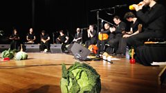 Plus, we get a lesson in playing the leek from an orchestra that only plays vegetables.