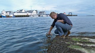 Ann an Ceòs, tha Lewis MacCoinnich a’ buain an ‘sugar kelp’