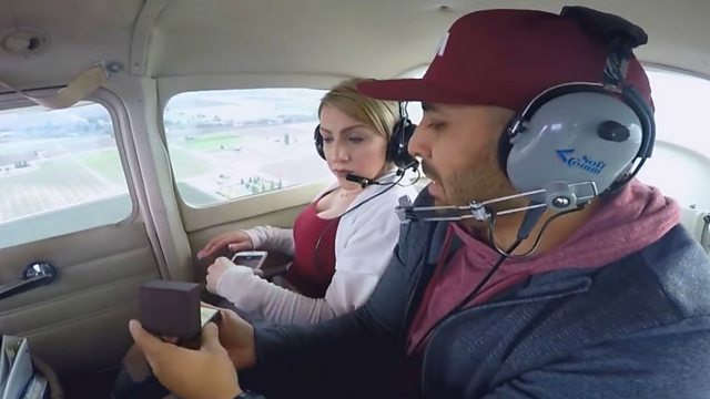Darrell Hamilton Jr probably wishes he'd taken an air sickness pill before proposing to his partner Rheanna Lopez on board a small plane.