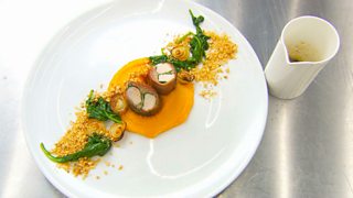 The final 14 battle against each other to cook one dish inspired by their childhood. There are split into two teams, blue and red, and its the blues who are cooking first.