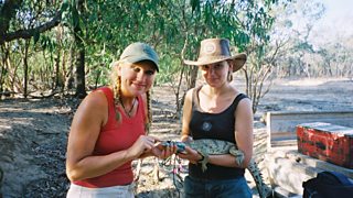 Mewn rhaglen o'r archif mae Amanda Protheroe-Thomas yn astudio crocodeilod yn Nhiriogae...