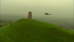 A Royal Navy helicopter's helped with repairs at Glastonbury Tor
