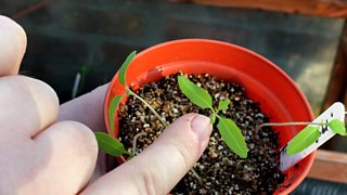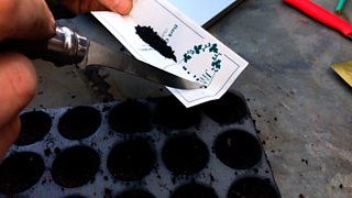 David sows tomato seeds for a tasty harvest later in the year.