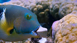 The tusk fish opens clams in its 'special kitchen'.