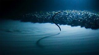 A cutthroat eel ventures too close to a deep-sea brine lake.
