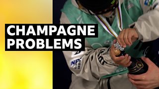 'Oh my word!' - Snowboarders can't open champagne bottle