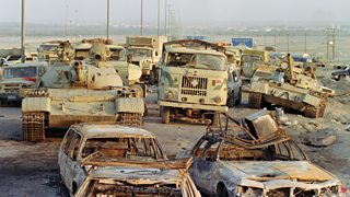 Allied forces bombed Iraqi vehicles leaving Kuwait at the end of the first Gulf War