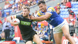 Live coverage of the second semi-final, between Warrington Wolves and Leeds Rhinos.