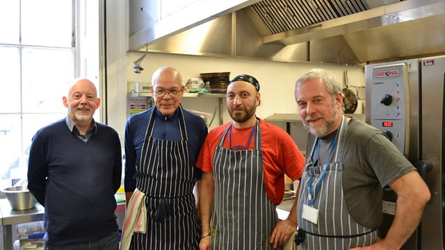 As part of the Radio 4 Christmas Appeal, JP visited The Connection at St Martin-in-the-Fields to find out what was cooking in the kitchen. (L-R: JP, Dennis, Bruce and Geraint).