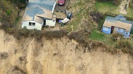 Two of the affected bungalows in Hemsby are "pivoting" on the edge of the sand cliff-top.
