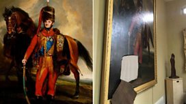 Four 19th Century oil paintings of local dignitaries are slashed during a break-in.