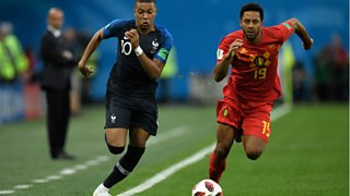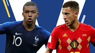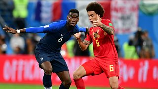 Watch highlights of the World Cup semi-final between France v Belgium.