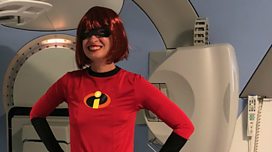 Liz O'Riordan turned up for her last radiotherapy session as "Mrs Incredible".