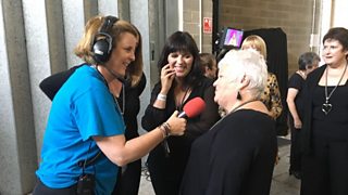 Cor Tonic sydd yn sgwrsio cefn llwyfan gyda Nia Lloyd Jones.