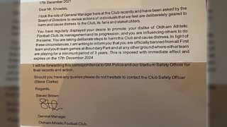 Oldham fan claims to have been banned from games until 2024.