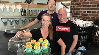 Ed Neilson of Café Velo arrived on his bike to support James.