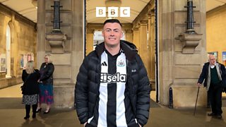 Newcastle fan Matty and barber Mich discuss the viral cut ahead of the league cup final.