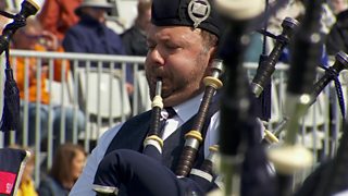 Performing at the 2019 World Pipe Band Championships.