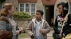 John and Susan try to tempt Worzel with a silk scarf, he accepts their offer.