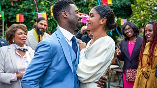 Kieran (Gary Carr) interrupts Gemma (Thalissa Teixeira) and Ray (Ariane Labed) at an intimate point.