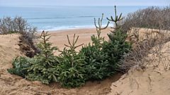 Christmas Trees at Fistral help the dunes stabilise