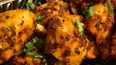 Balti in a balti bowl and paella in a paella dish