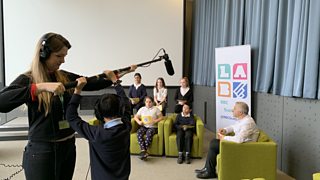 Pupils from Castleton Primary prepare and film Michael Rosen about being an author.