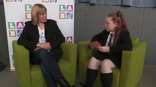 Children's author Lauren St John interviewed by school pupils.