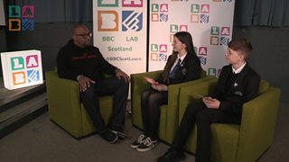 The pupils from Calderhead High School talk to author and poet Dean Atta.