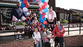 Volunteer Jo Mason celebrates a Queen's Award for Church Fenton's Community Shop.