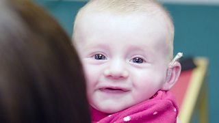 Baby Cameron hears his mum clearly for the first time