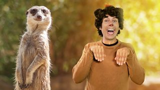 Andy raps about meerkats and joins them in scaring off snakes and eating scorpions – yuck