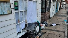 Car smashes into curry house window