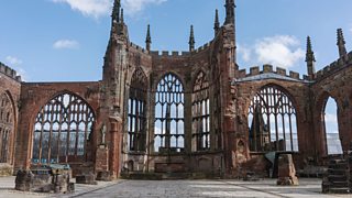 On 26 April 1962 a RAF Belvedere helicopter places the 25-metre open-work bronze spire on the roof of the new Coventry Cathedral.
