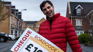 It's the Roadcode Lottery and the team are about to surprise Margaret with a cheque for £100,000