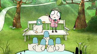 Sarah is awarded a crown by the ducks at the pond.