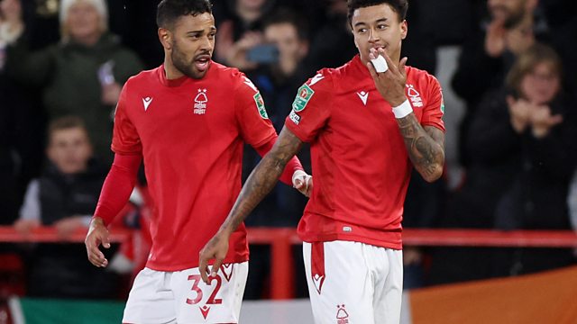 Forest goal scorer Jesse Lingard talks to Colin Fray after the EFL Cup win against Spurs.