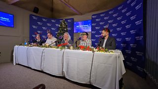 Comedians Paul McCaffrey, Paul Cox, Peebs Collier and Daniel Edison join Sam Fraser for festive fun and games.