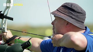 Dòmhnall MacAonghais a' coimhead air adhart ri pà irt a ghabhail sna farpaisean losgaidh.